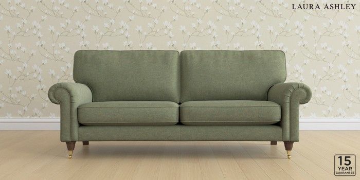 6.12.1 Buy Kingston by Laura Ashley 3 Seater Sofa Harley Moss Green Low Brass Castor - Chestnut from the Next UK online shop Click here to use our accessible website