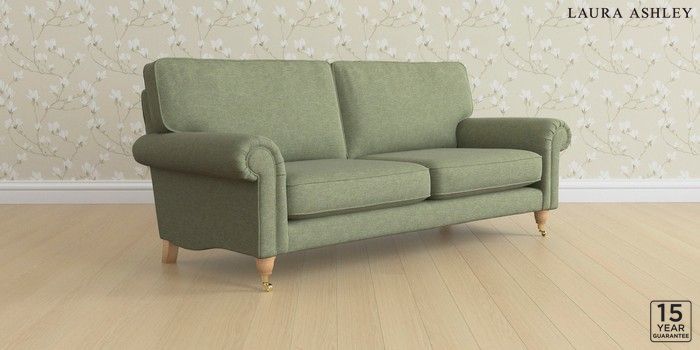 6.12.1 Buy Kingston by Laura Ashley 3 Seater Sofa Harley Moss Green Low Brass Castor - Light Oak from the Next UK online shop Click here to use our accessible website