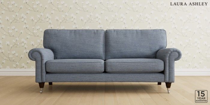 6.12.1 Buy Kingston by Laura Ashley 3 Seater Sofa Harley Seaspray Blue Low Chrome Castor - Chestnut from the Next UK online shop Click here to use our accessible website