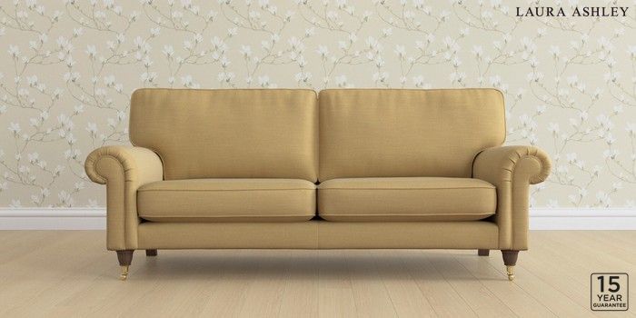 6.12.1 Buy Kingston by Laura Ashley 3 Seater Sofa Kinsham Ochre Yellow Low Brass Castor - Chestnut from the Next UK online shop Click here to use our accessible website