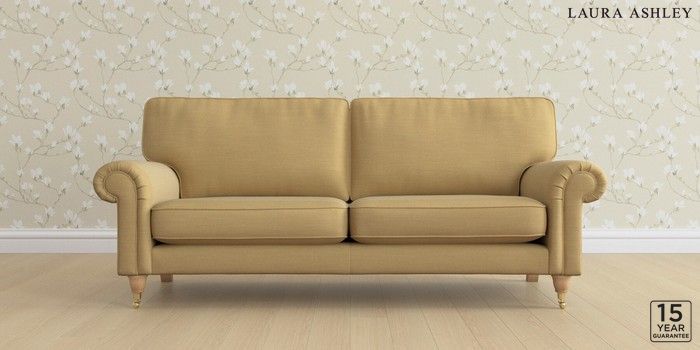 6.12.1 Buy Kingston by Laura Ashley 3 Seater Sofa Kinsham Ochre Yellow Low Brass Castor - Light Oak from the Next UK online shop Click here to use our accessible website