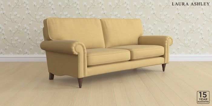 6.12.1 Buy Kingston by Laura Ashley 3 Seater Sofa Kinsham Ochre Yellow Low Turned - Chestnut from the Next UK online shop Click here to use our accessible website