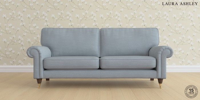 6.12.1 Buy Kingston by Laura Ashley 3 Seater Sofa Kinsham Seaspray Blue Low Brass Castor - Chestnut from the Next UK online shop Click here to use our accessible website