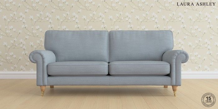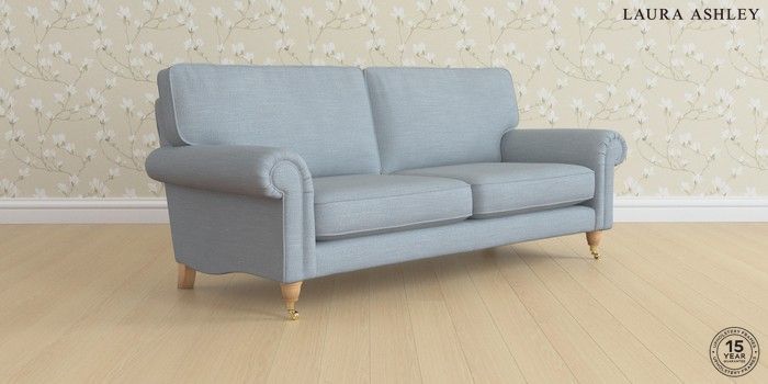 6.12.1 Buy Kingston by Laura Ashley 3 Seater Sofa Kinsham Seaspray Blue Low Brass Castor - Light Oak from the Next UK online shop Click here to use our accessible website