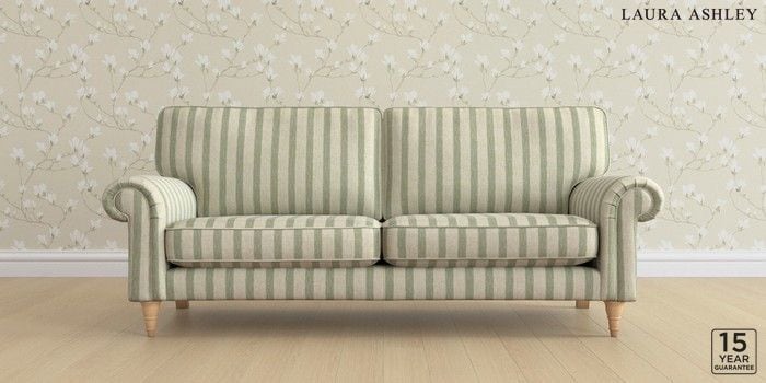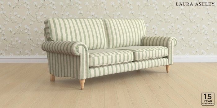 6.12.13 Buy Kingston by Laura Ashley 3 Seater Sofa Kinsham Stripe Hedgerow Green Low Turned - Light Oak from the Next UK online shop Click here to use our accessible website