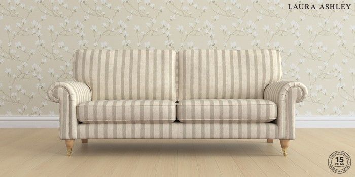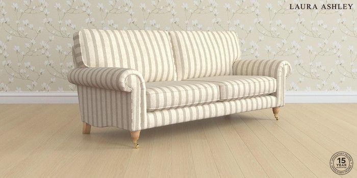 6.12.1 Buy Kingston by Laura Ashley 3 Seater Sofa Kinsham Stripe Natural Low Brass Castor - Light Oak from the Next UK online shop Click here to use our accessible website