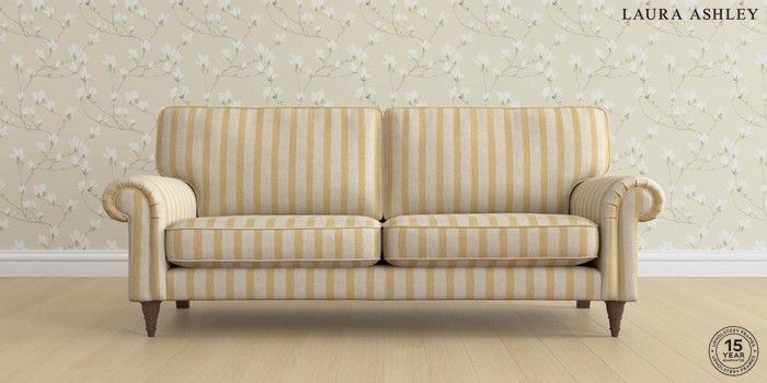 7.0.3 Buy Kingston by Laura Ashley 3 Seater Sofa Kinsham Stripe Ochre Yellow Low Turned - Chestnut from the Next UK online shop Click here to use our accessible website