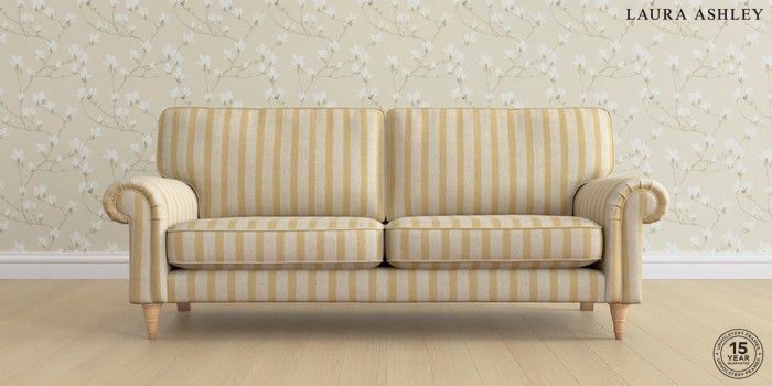 7.0.3 Buy Kingston by Laura Ashley 3 Seater Sofa Kinsham Stripe Ochre Yellow Low Turned - Light Oak from the Next UK online shop Click here to use our accessible website