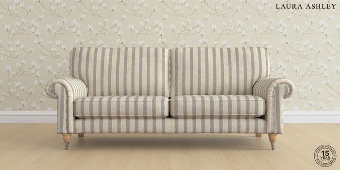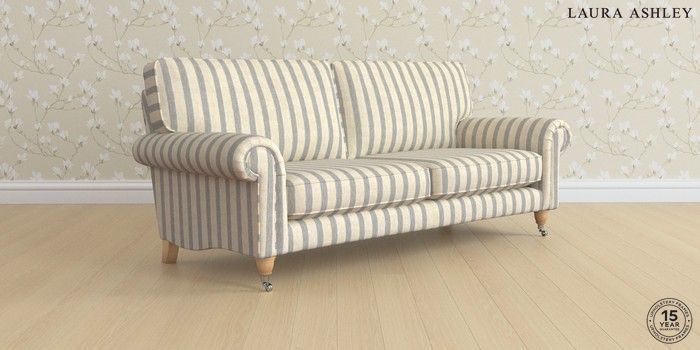 6.12.1 Buy Kingston by Laura Ashley 3 Seater Sofa Kinsham Stripe Seaspray Blue Low Chrome Castor - Light Oak from the Next UK online shop Click here to use our accessible website