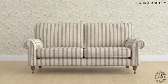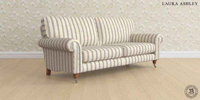 6.12.1 Buy Kingston by Laura Ashley 3 Seater Sofa Kinsham Stripe Seaspray Blue Low Chrome Castor - Teak from the Next UK online shop Click here to use our accessible website
