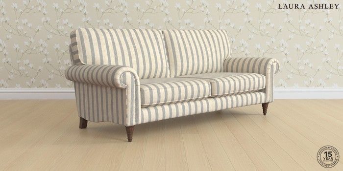 6.12.1 Buy Kingston by Laura Ashley 3 Seater Sofa Kinsham Stripe Seaspray Blue Low Turned - Chestnut from the Next UK online shop Click here to use our accessible website