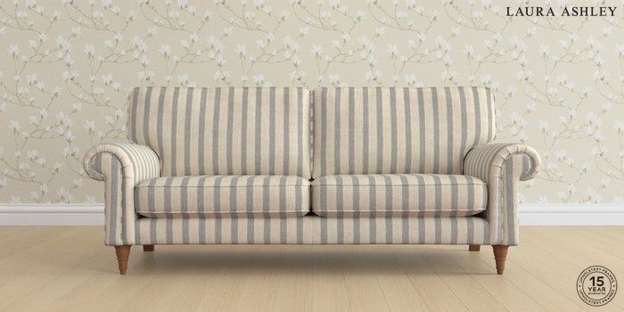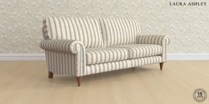 6.12.1 Buy Kingston by Laura Ashley 3 Seater Sofa Kinsham Stripe Seaspray Blue Low Turned - Teak from the Next UK online shop Click here to use our accessible website