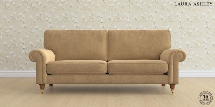 6.12.1 Buy Kingston by Laura Ashley 3 Seater Sofa Lundar Chenille Caramel Natural Low Brass Castor - Teak from the Next UK online shop Click here to use our accessible website