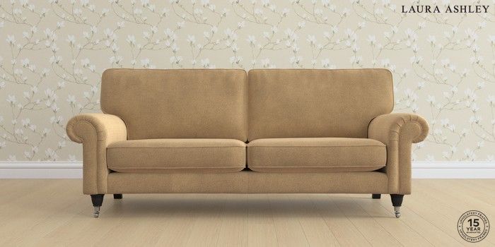 6.12.1 Buy Kingston by Laura Ashley 3 Seater Sofa Lundar Chenille Caramel Natural Low Chrome Castor - Black from the Next UK online shop Click here to use our accessible website