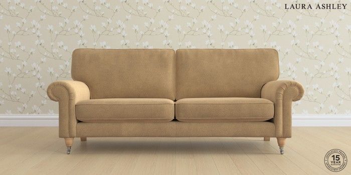 6.12.1 Buy Kingston by Laura Ashley 3 Seater Sofa Lundar Chenille Caramel Natural Low Chrome Castor - Light Oak from the Next UK online shop Click here to use our accessible website