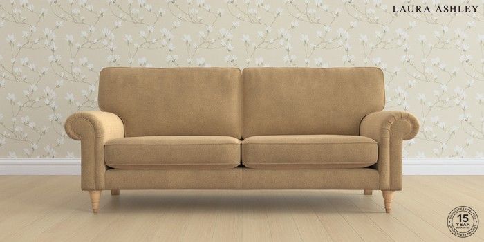 6.12.1 Buy Kingston by Laura Ashley 3 Seater Sofa Lundar Chenille Caramel Natural Low Turned - Light Oak from the Next UK online shop Click here to use our accessible website