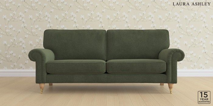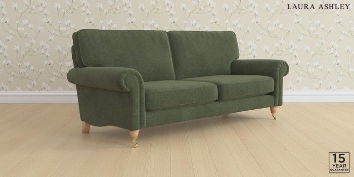 6.12.1 Buy Kingston by Laura Ashley 3 Seater Sofa Lundar Chenille Ivy Green Low Brass Castor - Light Oak from the Next UK online shop Click here to use our accessible website