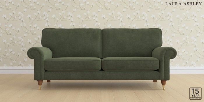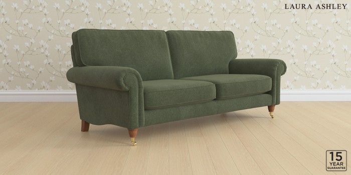 6.12.1 Buy Kingston by Laura Ashley 3 Seater Sofa Lundar Chenille Ivy Green Low Brass Castor - Teak from the Next UK online shop Click here to use our accessible website