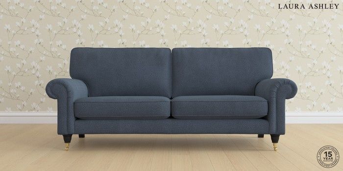 6.12.1 Buy Kingston by Laura Ashley 3 Seater Sofa Lundar Chenille Navy Blue Low Brass Castor - Black from the Next UK online shop Click here to use our accessible website