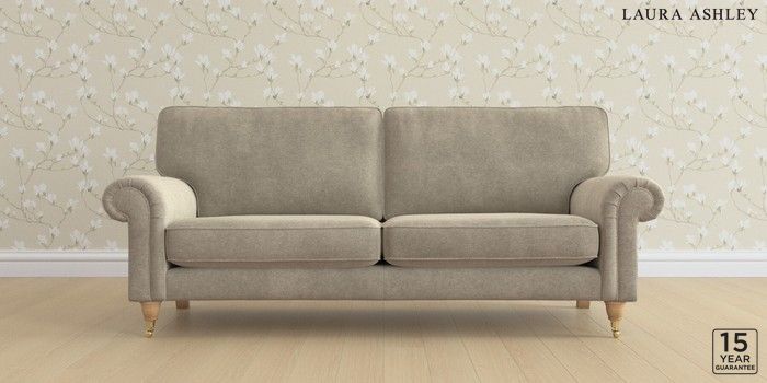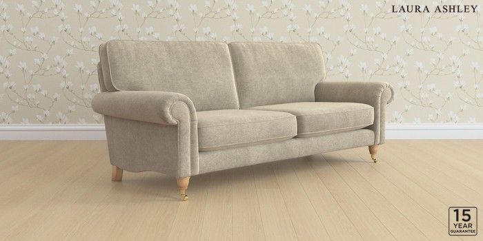 6.12.1 Buy Kingston by Laura Ashley 3 Seater Sofa Lundar Chenille Truffle Natural Low Brass Castor - Light Oak from the Next UK online shop Click here to use our accessible website