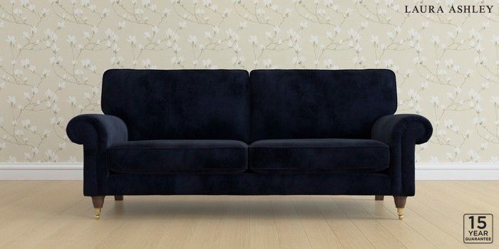 6.12.1 Buy Kingston by Laura Ashley 3 Seater Sofa Orla Midnight Navy Low Brass Castor - Chestnut from the Next UK online shop Click here to use our accessible website