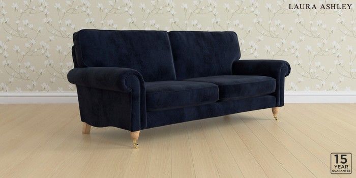 6.12.13 Buy Kingston by Laura Ashley 3 Seater Sofa Orla Midnight Navy Low Brass Castor - Light Oak from the Next UK online shop Click here to use our accessible website