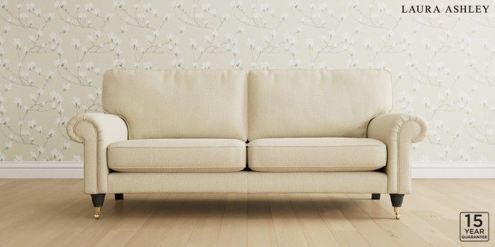 6.12.1 Buy Kingston by Laura Ashley 3 Seater Sofa Orla Oyster Natural Low Brass Castor - Black from the Next UK online shop Click here to use our accessible website