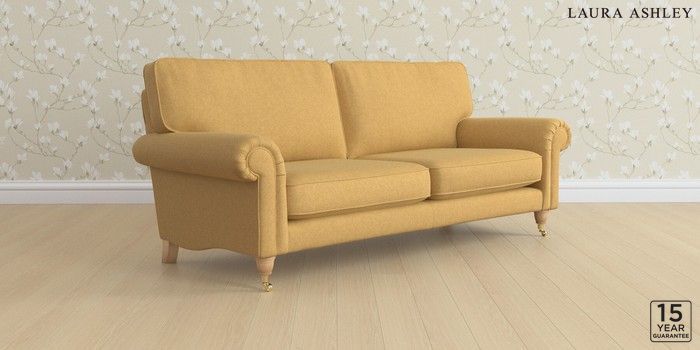6.12.1 Buy Kingston by Laura Ashley 3 Seater Sofa Peyton Ochre Yellow Low Brass Castor - Light Oak from the Next UK online shop Click here to use our accessible website