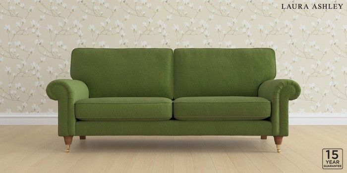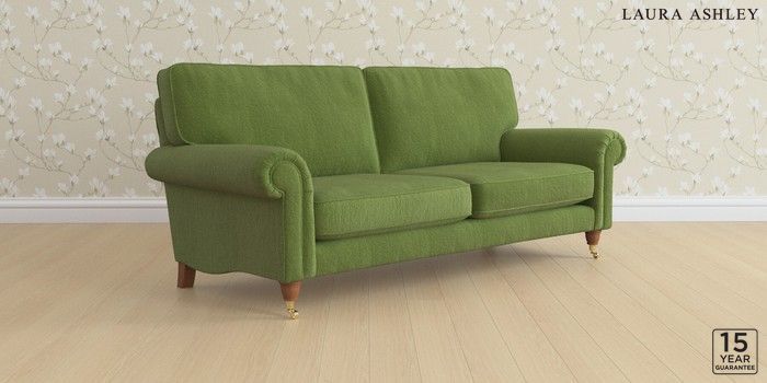 6.12.13 Buy Kingston by Laura Ashley 3 Seater Sofa Tichwell Olive Green Low Brass Castor - Teak from the Next UK online shop Click here to use our accessible website