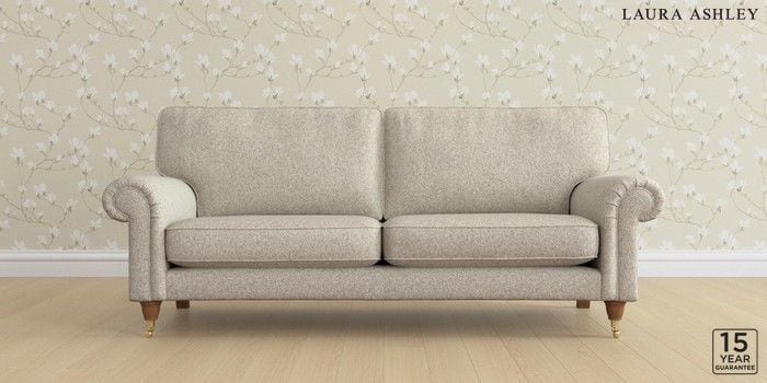 6.12.1 Buy Kingston by Laura Ashley 3 Seater Sofa Tichwell Stone Natural Low Brass Castor - Teak from the Next UK online shop Click here to use our accessible website