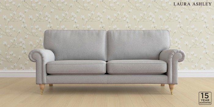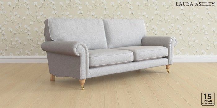 6.12.1 Buy Kingston by Laura Ashley 3 Seater Sofa Wooton Pale Steel Grey Low Brass Castor - Light Oak from the Next UK online shop Click here to use our accessible website