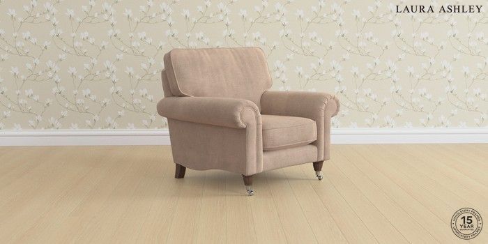 6.12.1 Buy Kingston by Laura Ashley Armchair Ailsworth Mink Natural Low Chrome Castor - Chestnut from the Next UK online shop Click here to use our accessible website
