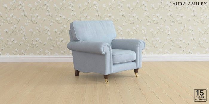 6.12.13 Buy Kingston by Laura Ashley Armchair Ailsworth Newport Blue Low Brass Castor - Chestnut from the Next UK online shop Click here to use our accessible website