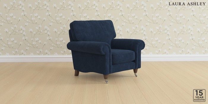 6.12.13 Buy Kingston by Laura Ashley Armchair Alwyn Velvet Midnight Navy Low Chrome Castor - Chestnut from the Next UK online shop Click here to use our accessible website