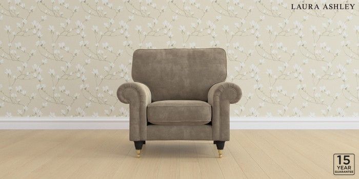 6.12.13 Buy Kingston by Laura Ashley Armchair Alwyn Velvet Truffle Natural Low Brass Castor - Black from the Next UK online shop Click here to use our accessible website