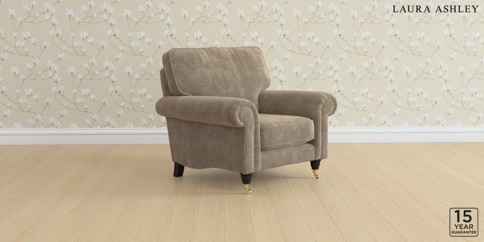 6.12.1 Buy Kingston by Laura Ashley Armchair Alwyn Velvet Truffle Natural Low Brass Castor - Black from the Next UK online shop Click here to use our accessible website