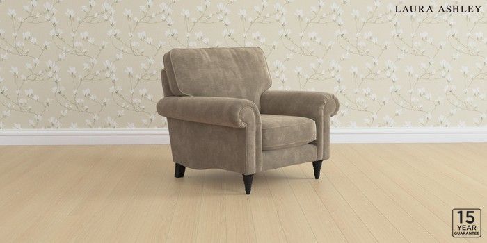 6.12.1 Buy Kingston by Laura Ashley Armchair Alwyn Velvet Truffle Natural Low Turned - Black from the Next UK online shop Click here to use our accessible website