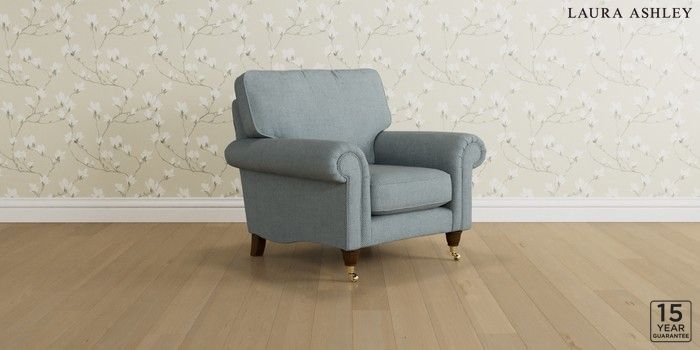 6.12.1 Buy Kingston by Laura Ashley Armchair Anneliese Seaspray Blue Low Brass Castor - Teak from the Next UK online shop Click here to use our accessible website