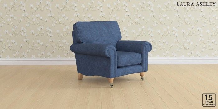 6.12.1 Buy Kingston by Laura Ashley Armchair Bainton Midnight Navy Low Chrome Castor - Light Oak from the Next UK online shop Click here to use our accessible website