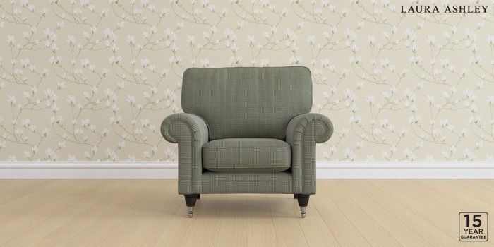 6.12.1 Buy Kingston by Laura Ashley Armchair Birchgrove Check Olive Green Low Chrome Castor - Black from the Next UK online shop Click here to use our accessible website