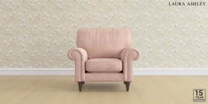 6.12.1 Buy Kingston by Laura Ashley Armchair Edwin Chenille Blush Pink Low Turned - Chestnut from the Next UK online shop Click here to use our accessible website