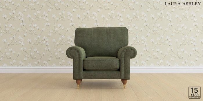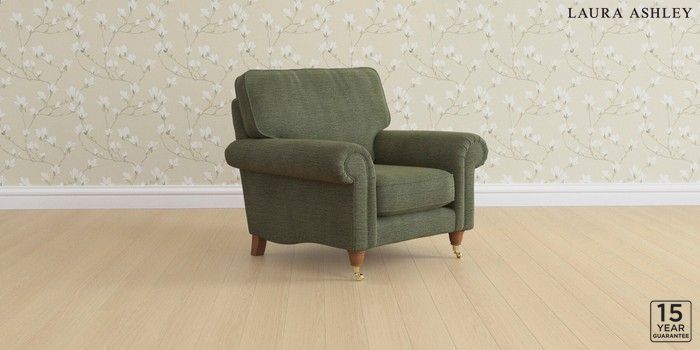 6.12.1 Buy Kingston by Laura Ashley Armchair Edwin Chenille Hedgerow Green Low Brass Castor - Teak from the Next UK online shop Click here to use our accessible website