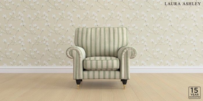 6.12.13 Buy Kingston by Laura Ashley Armchair Kinsham Stripe Hedgerow Green Low Brass Castor - Black from the Next UK online shop Click here to use our accessible website