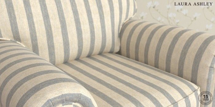 6.12.1 Buy Kingston by Laura Ashley Armchair Kinsham Stripe Seaspray Blue Low Chrome Castor - Chestnut from the Next UK online shop Click here to use our accessible website