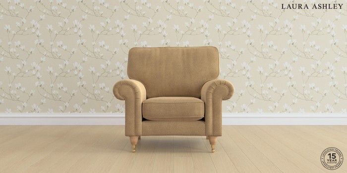 6.12.1 Buy Kingston by Laura Ashley Armchair Lundar Chenille Caramel Natural Low Brass Castor - Light Oak from the Next UK online shop Click here to use our accessible website