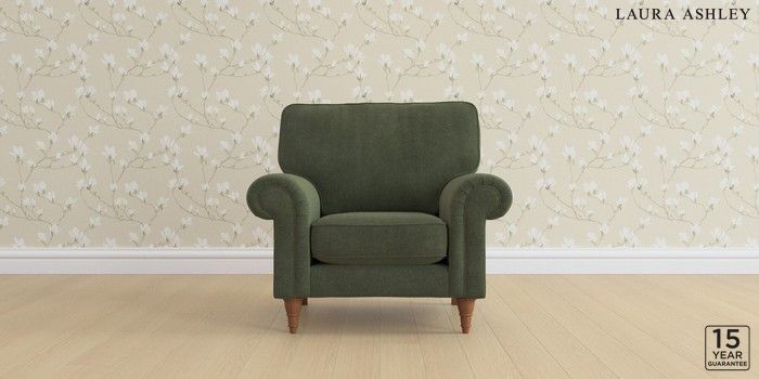 6.12.13 Buy Kingston by Laura Ashley Armchair Lundar Chenille Ivy Green Low Turned - Teak from the Next UK online shop Click here to use our accessible website