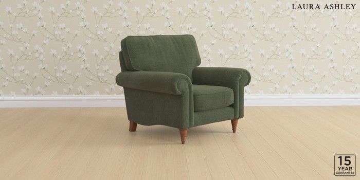 6.12.1 Buy Kingston by Laura Ashley Armchair Lundar Chenille Ivy Green Low Turned - Teak from the Next UK online shop Click here to use our accessible website