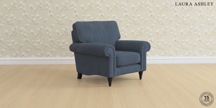 6.12.1 Buy Kingston by Laura Ashley Armchair Lundar Chenille Navy Blue Low Turned - Black from the Next UK online shop Click here to use our accessible website