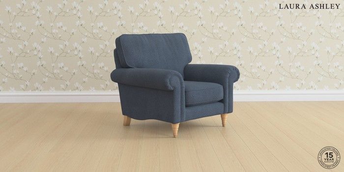 6.12.1 Buy Kingston by Laura Ashley Armchair Lundar Chenille Navy Blue Low Turned - Light Oak from the Next UK online shop Click here to use our accessible website