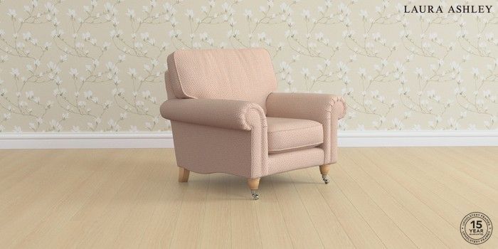 6.12.1 Buy Kingston by Laura Ashley Armchair Melbreak Geo Chalk Pink Low Chrome Castor - Light Oak from the Next UK online shop Click here to use our accessible website